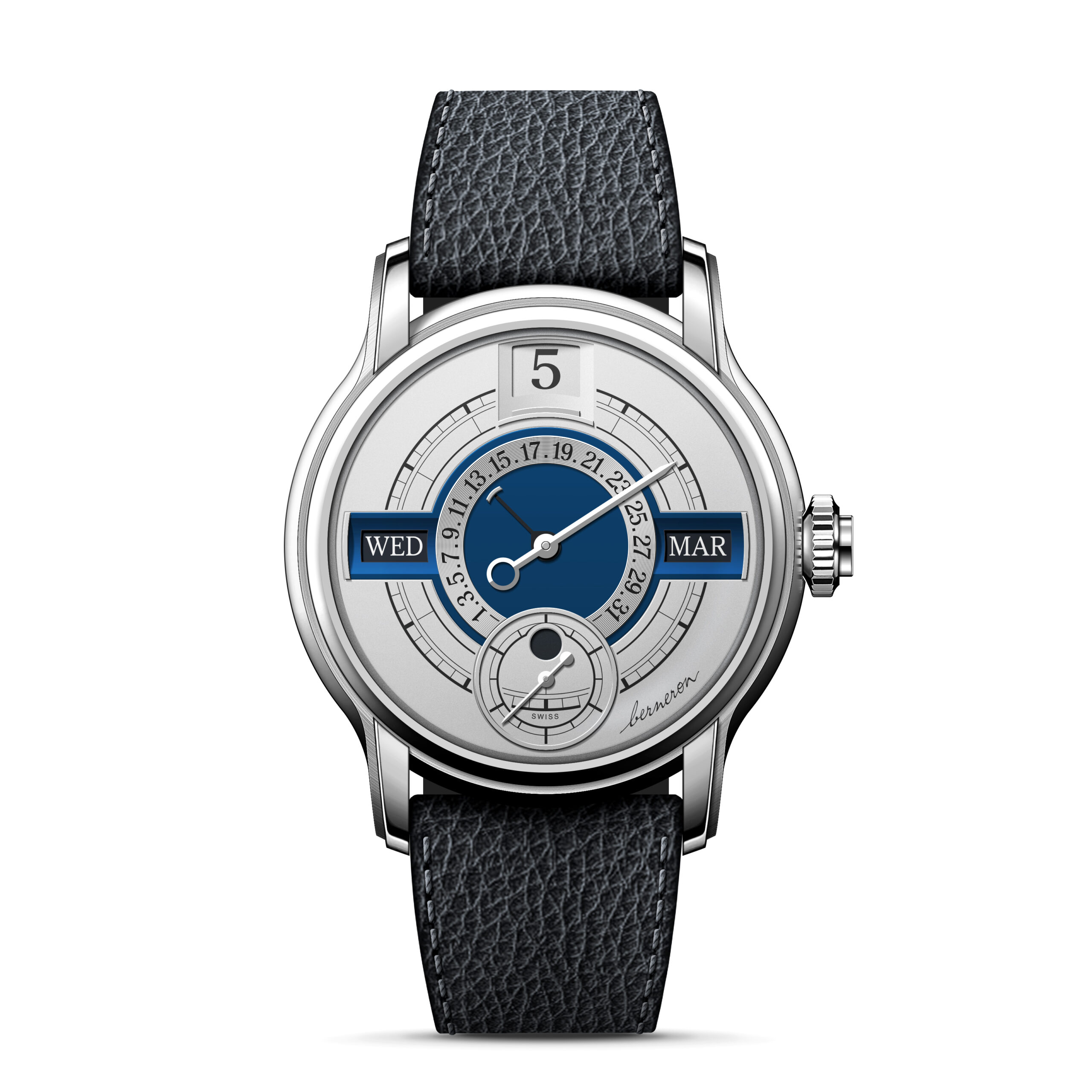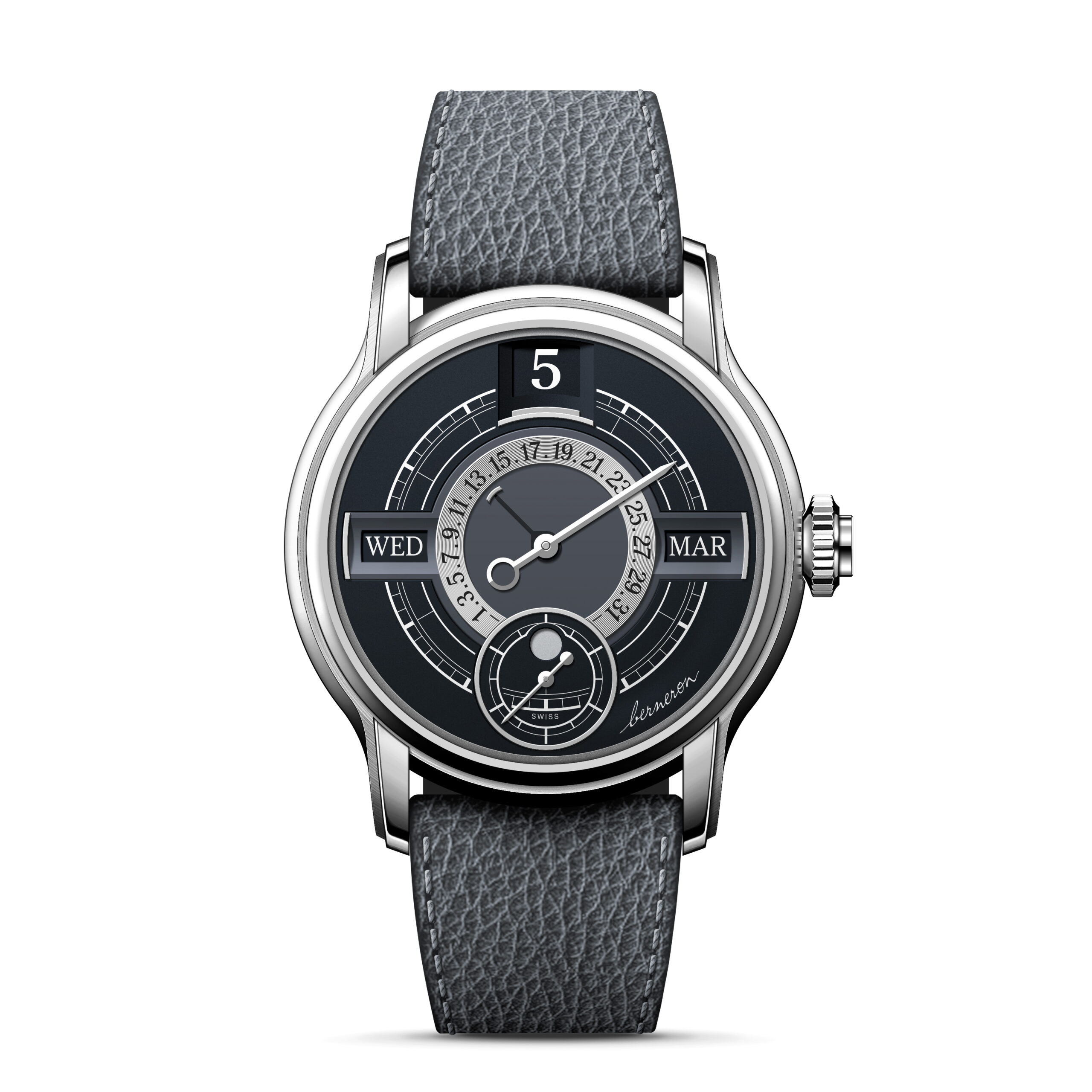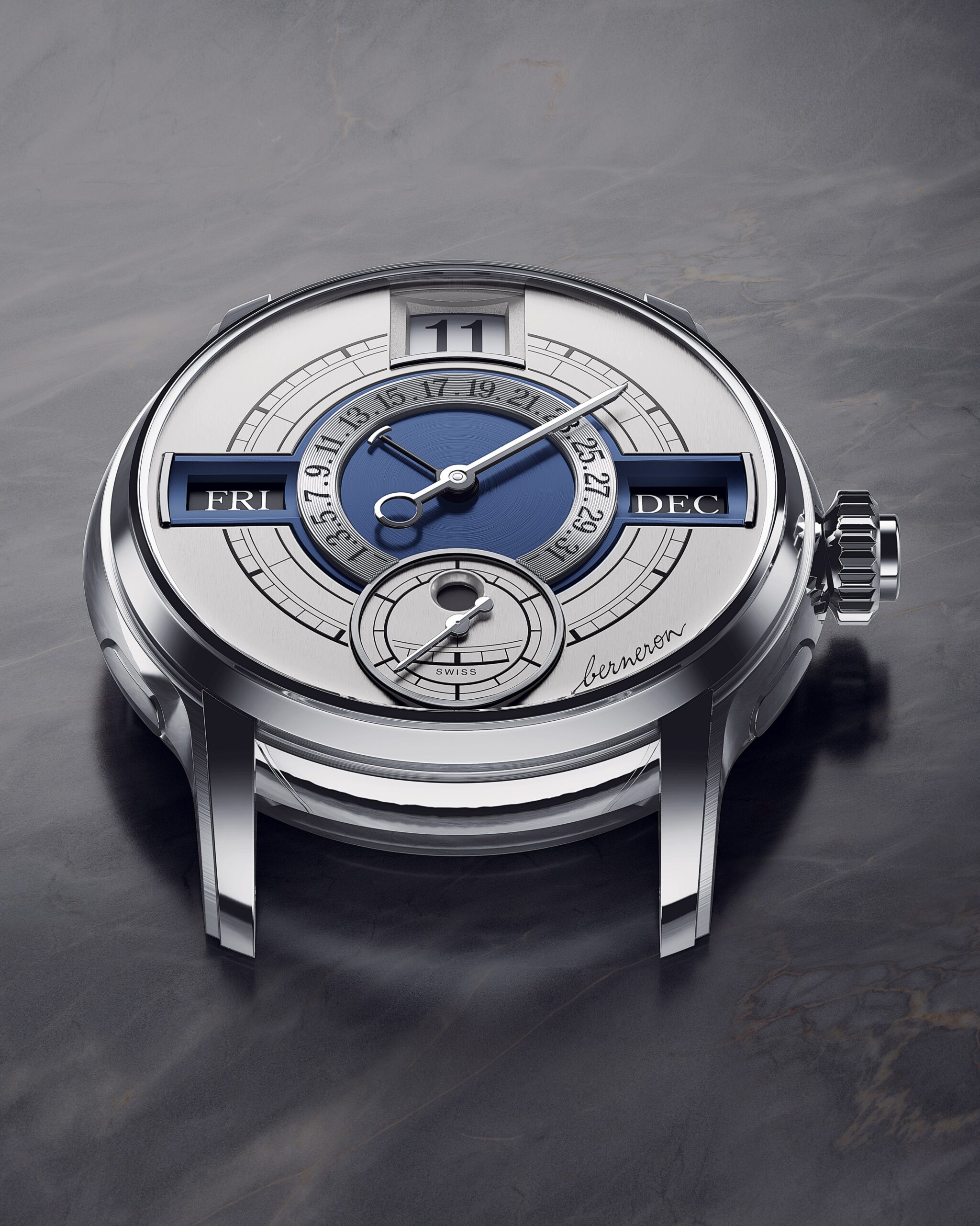 Given the complexity of the annual calendar module (two patents filed, and employs a grand lever) the question was why not a perpetual calendar? Berneron’s answer was characteristically direct: “A QP module adds a lot of volume. It would be like driving around every day with a trailer hitched to your car, just because you’ll use it once every four years.” Hence, he dispensed with the perpetual and drew two clear benefits: the freed volume allowed for an officer case, something to be enjoyed daily, and the dial remained clean and legible, unencumbered by the four-counter layout he considers little more than visual clutter for a function seldom used.