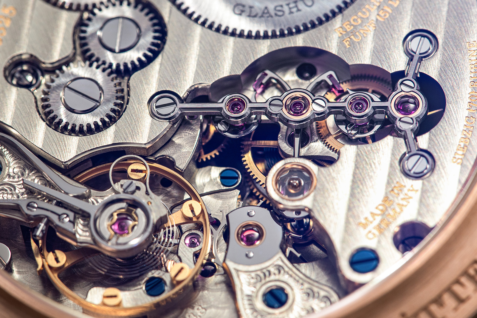 The Calibre L043.8 within comprises of an astonishing 516 parts, which is significantly more than the Calibre L043.6 in the time-only Zeitwerk with 451 parts and even the L001.1 in the Double Split with 465 parts.