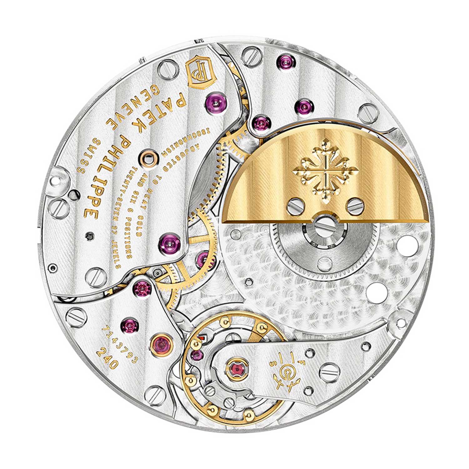 Introduced in 1977, the beautifully engineered self-winding calibre 240 can be found in all its splendour in one of the most distinctive modern Calatrava models – the 6000/ 6006G. Though the movement has been used in other Calatrava watches such as the ref. 5120, it is this model in which the distinctive modernity of the movement is embraced in the design of the dial, demonstrating coherence and unity.