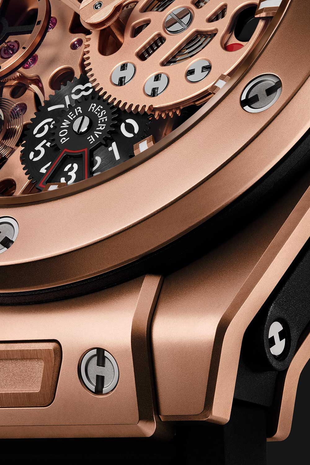 In addition to Magic Gold, Hublot has also created its own patented red gold alloy called King Gold which offers a richer, redder tone compared to traditional pink or rose gold, as well as increased resistance to oxidation. Perfectly suited for traditional polishing and satin finishing, King Gold is a blend of 75 percent 18K gold, along with 24 percent copper and 0.4 percent platinum, and pairs beautifully with other performance-oriented materials such as high-tech ceramic, carbon and, of course, rubber.