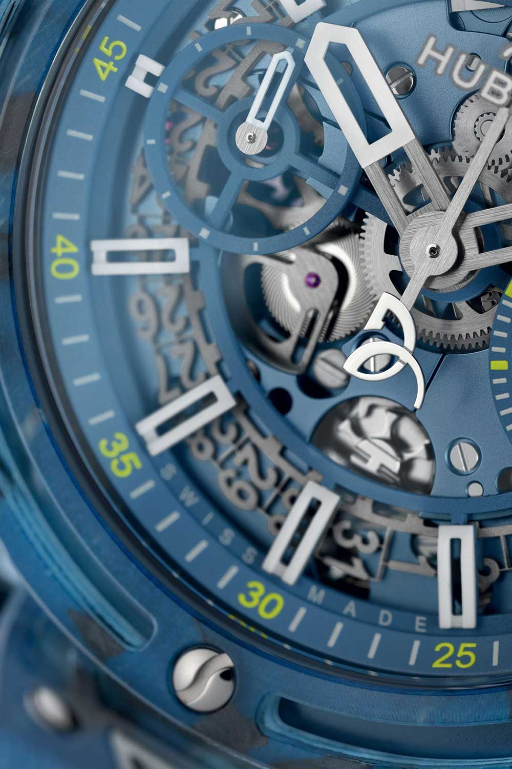 It wasn’t an easy path, but Hublot did it, and the results were nothing short of mind-blowing. There is a very practical reason why ceramic mainly existed in just black or white tones. High-tech ceramic cases and components are fabricated through a sintering process at high temperatures, which essentially bakes the material in order to harden and stabilize it, resulting in dull colors. To overcome this fundamental issue, Hublot created a patented process that prevents pigment degradation during the sintering process, thereby allowing for rich and stable colors. Once this was achieved, there was no limit as to what the manufacture could do with this material.