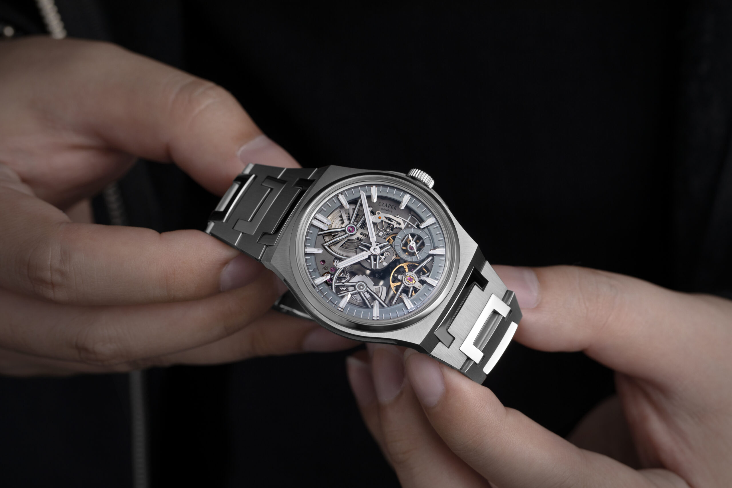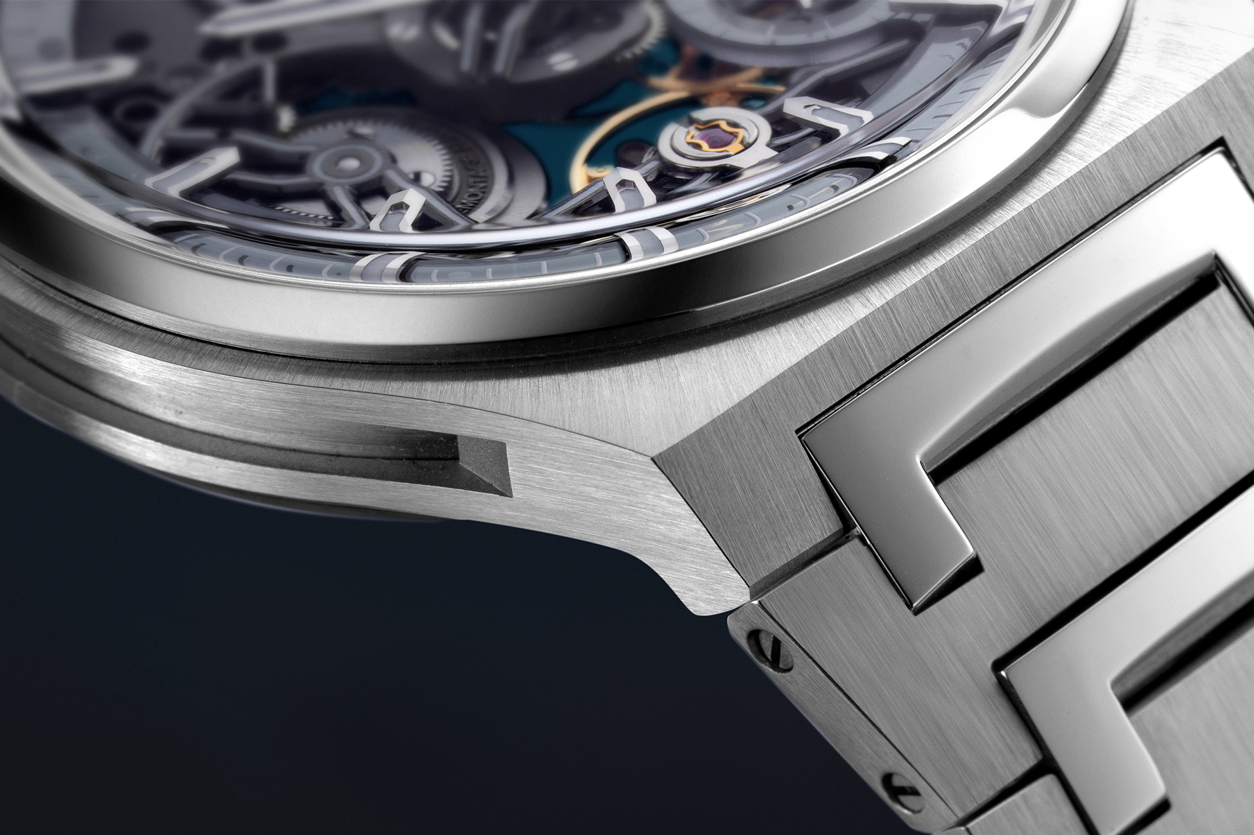 Says Wei, “Since its launch, the Antarctique has become one of the most compelling integrated bracelet sport-chic watches in the world of high watchmaking. The skeletonized version takes this story even further, with its sculptural open-working and beautifully crafted full-bridge movement. The caliber’s finger bridges have been transformed into architectural, flying buttress-like structures — so striking that we felt they deserved to be highlighted, even at night. That’s why we decided to apply Super-LumiNova to all the bridges, allowing the watch to come alive in low light with an incredibly cool and distinctive luminous signature.”