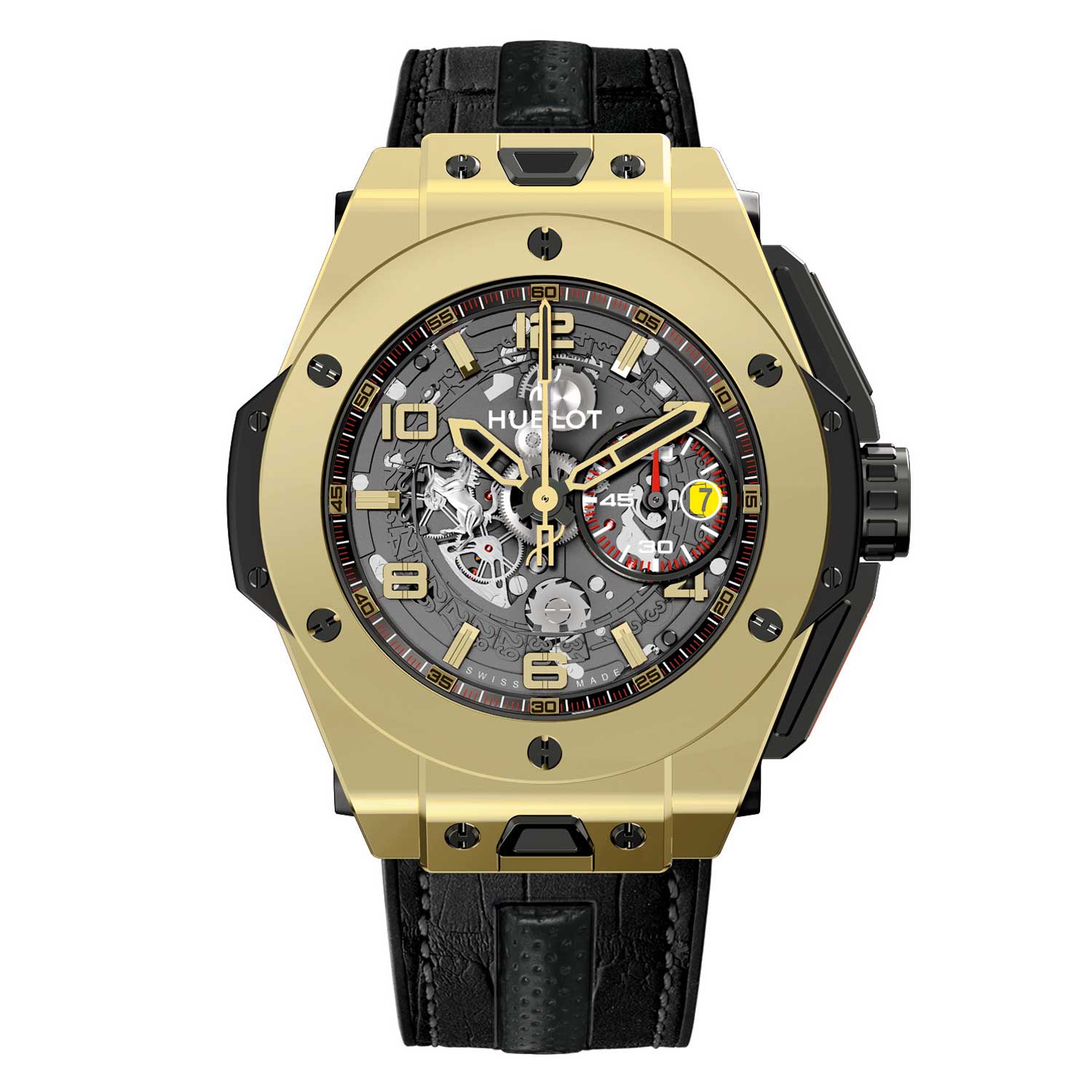Hublot’s first official automotive partnership was in 2011 when the watch brand became the timekeeper and watchmaker for the cultural icon Ferrari, including the F1 team Scuderia Ferrari. Many of the Hublot Ferrari watches were co-designed with Ferrari’s chief designer Flavio Manzoni, a pairing that worked due to a mutual desire to challenge convention, rather than relying on tradition. Bold, futuristic designs, unconventional shapes, materials and technical displays appealed to an emerging watch audience desperate for something new.