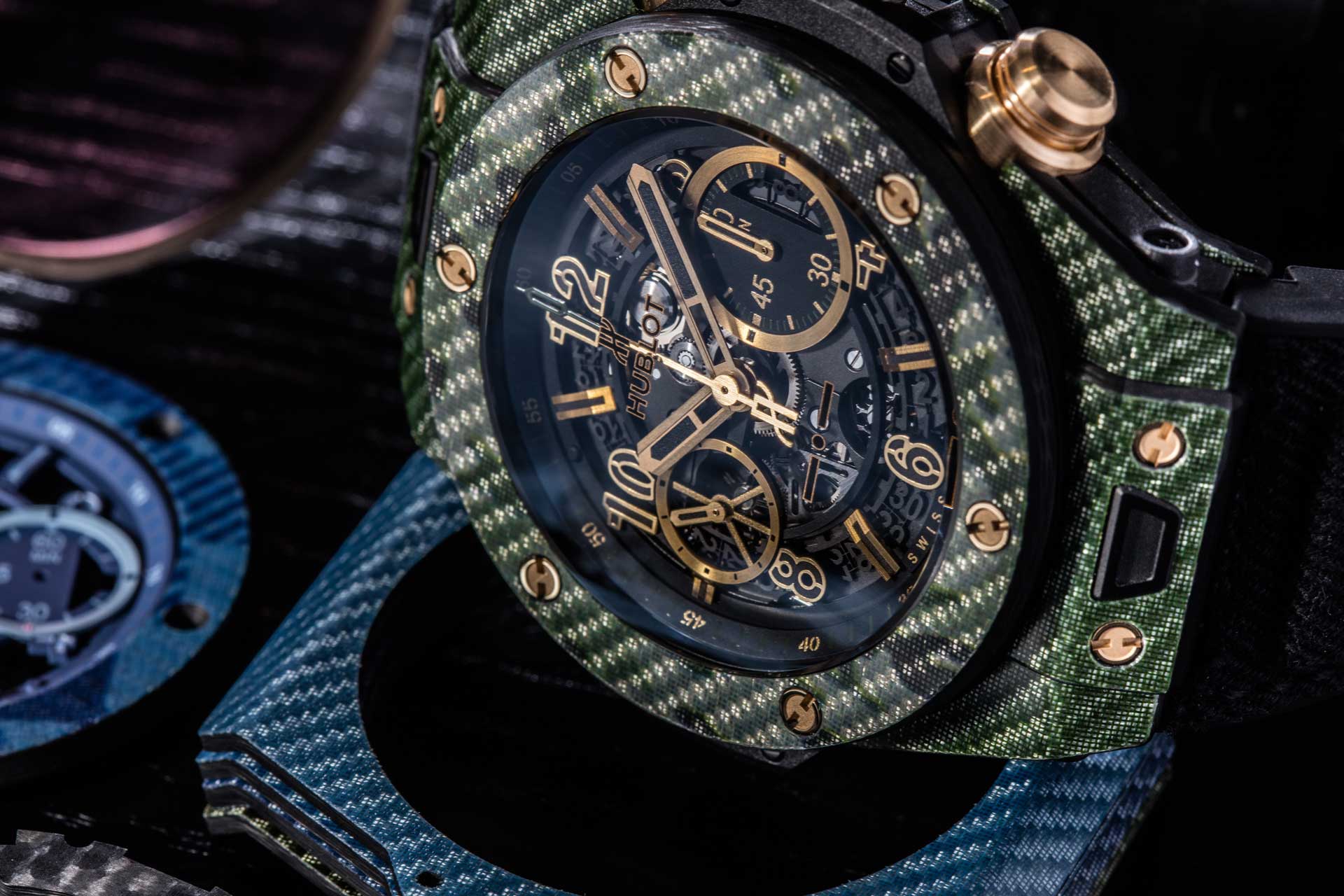 Hublot and Italia Independent presented a series of watches in 2016 where they incorporated camouflage patterns on Texalium, with colour variations of green, blue and black