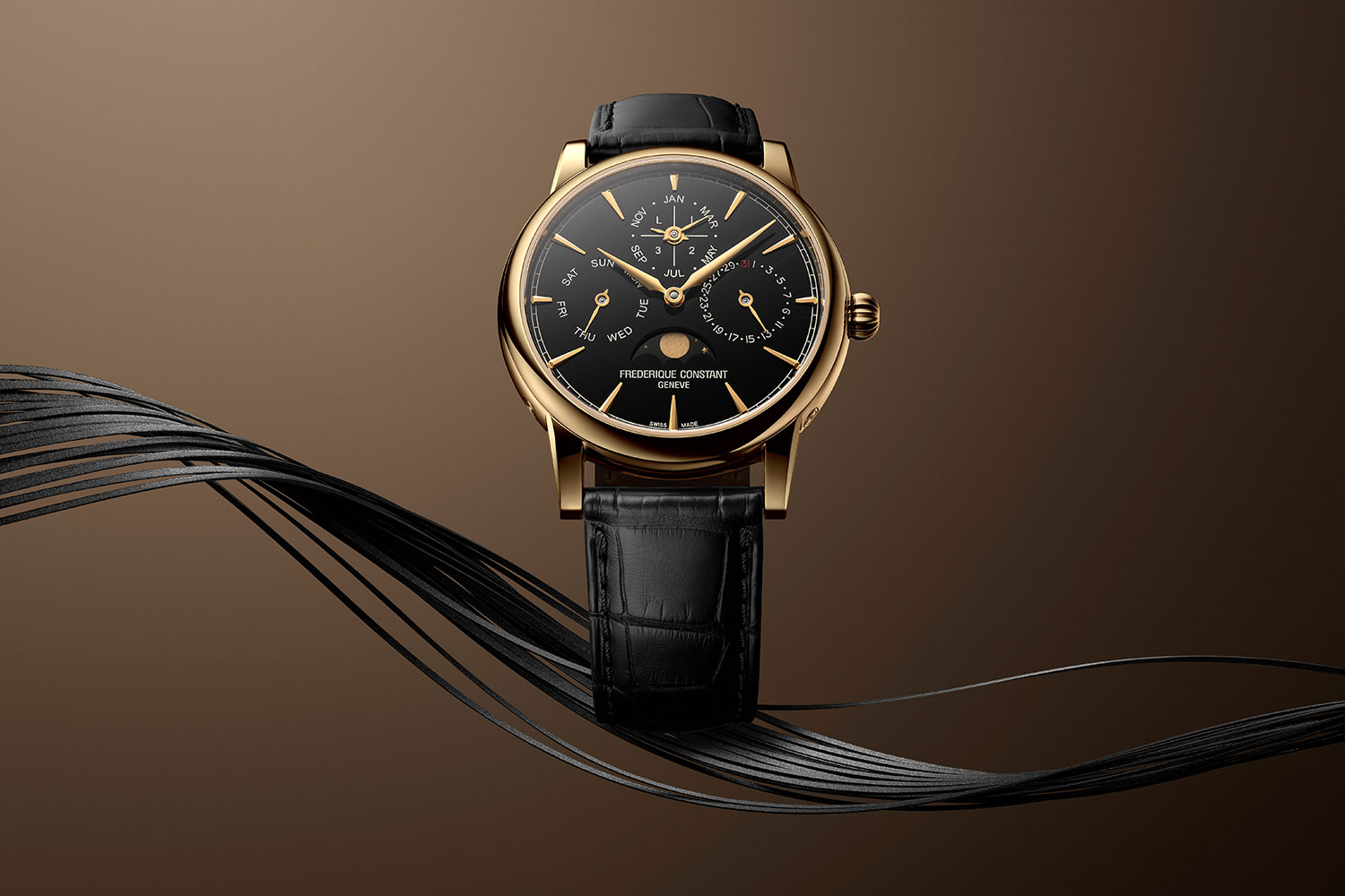 Frederique Constant Classics Perpetual Calendar Manufacture in 18K yellow gold paired with onyx-black dial