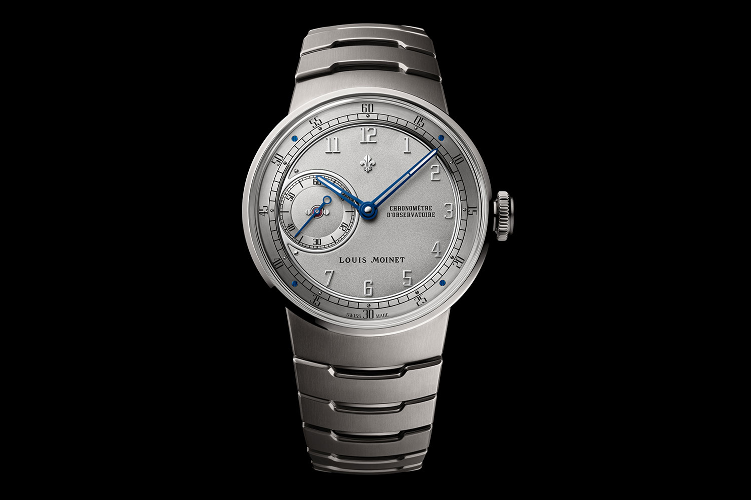 Louis Moinet’s spirit of innovation lives on in the new 1806. The watch houses a Directoire-style titanium case with double gadroon detailing, a fleur-de-lys crown honoring Moinet’s birthplace, and a rhodium-plated dial with blued-steel hands are all dressed up with Louis Moinet’s first titanium bracelet.