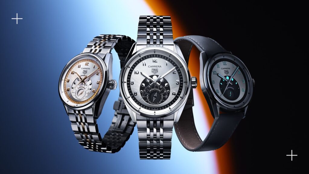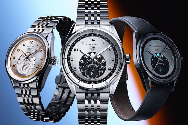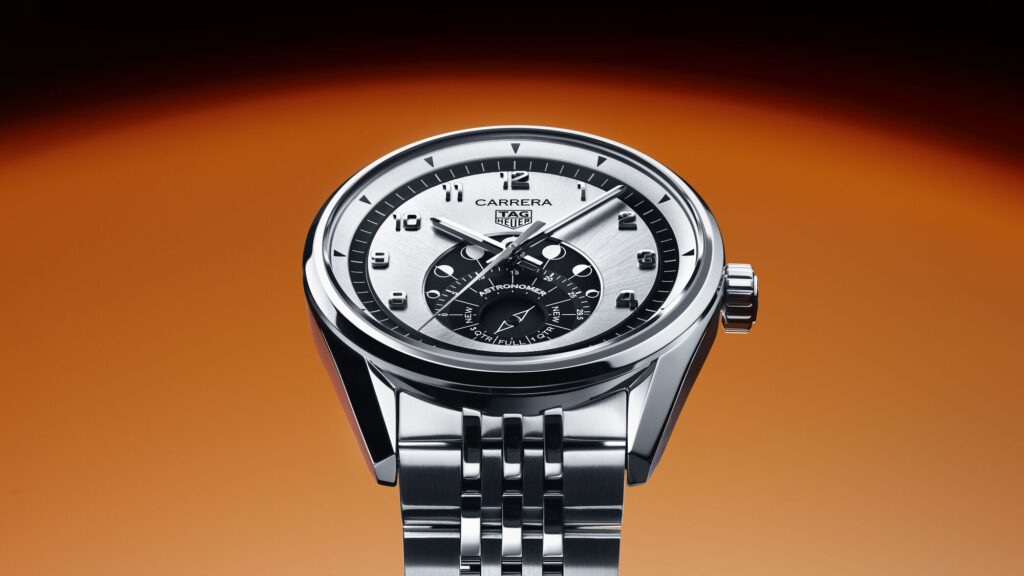 Offered as a trio of 39mm steel-cased Carreras, the Astronomer melds TAG Heuer’s technical approach with a more poetic expression of the moon. At the heart of this design is an unusual
