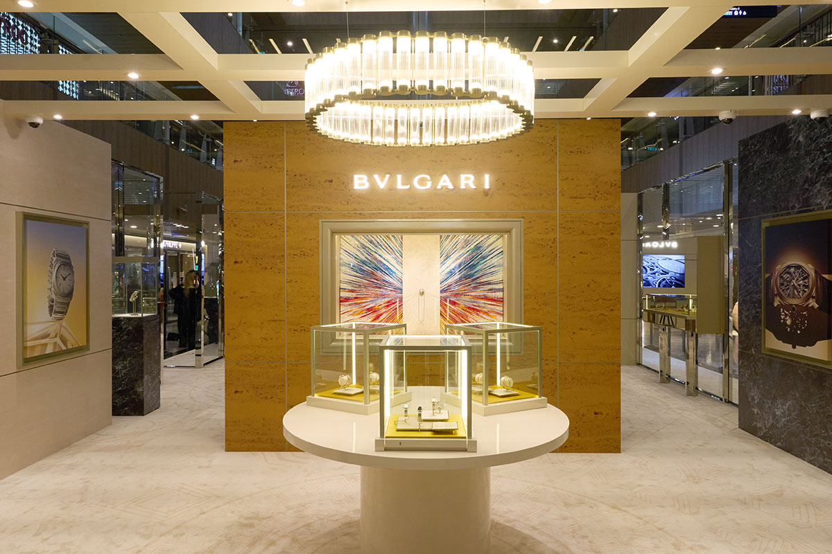 At the heart of the space is a B-shaped architectural centrepiece, spotlighting Bvlgari’s most exceptional high jewellery timepieces. The design draws from the minimalist philosophies of Ludwig Mies van der Rohe and Lilly Reich, modernist architects whose precision-driven approach mirrors the aesthetic purity of Bvlgari’s own icons.