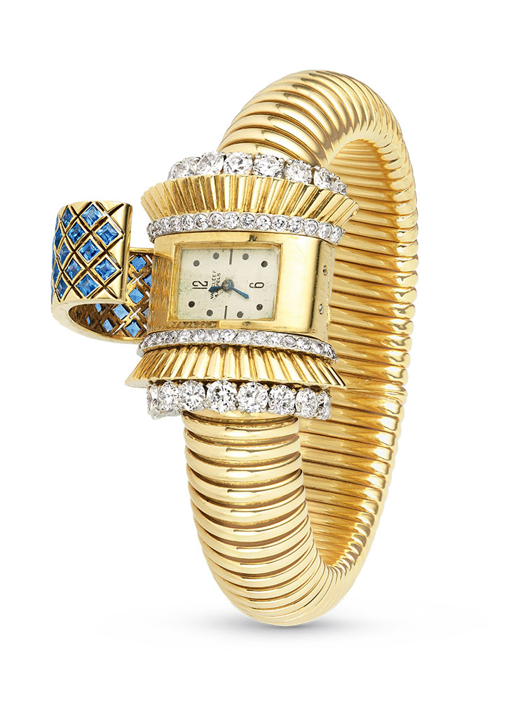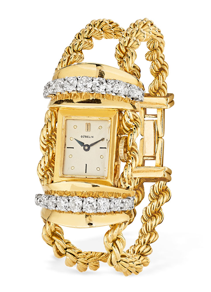 - A yellow gold wristwatch with diamonds for retailer Gübelin (1951)