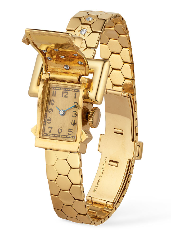 Where before, watches were exclusively produced for men, now they were considered for women too, except that the style in which they would be created was completely different. Women’s fashion between the 1940s and 50s were defined by ultra-feminine silhouettes with luxurious flourishes. To accompany this look and adapt to social norms of the time that deemed it unseemly for women to check the time openly, jewelers sought to create timepieces that were finely crafted, ultra-elegant, often set with gemstones, and above all, tastefully discreet. So came the return and subsequent rise of an early 19th century invention, secret watches, which as it happens, are a specialty at Van Cleef & Arpels.