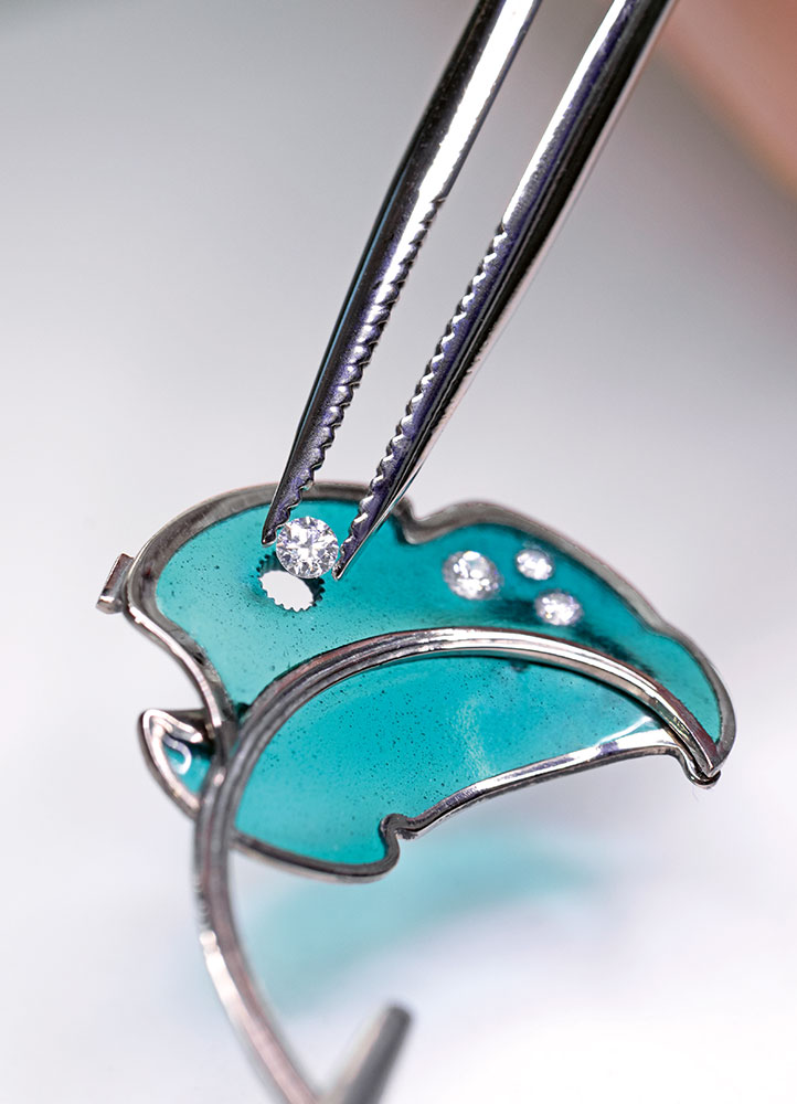 From this moment, Van Cleef & Arpels would become the industry’s finest benchmark for the traditional métiers d’arts, sweeping countless métiers d’arts prizes at subsequent GPHG ceremonies. The maison’s expertise on this subject extends beyond preserving and mastering the various crafts, but evolving it further than ever thought possible. In 2024, through the Lady Arpels Jour Enchantée, it debuted not one but three ground-breaking new techniques in hand-enamelling including gem-set on plique-à-jour enamel which was never before thought possible.