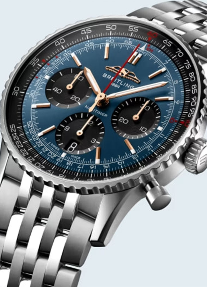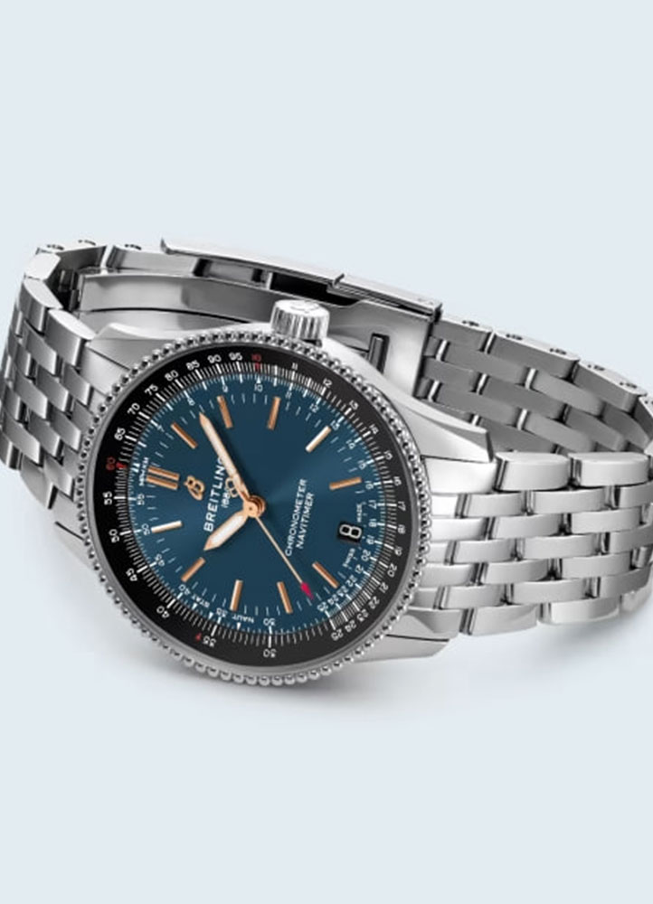 To celebrate the 70th anniversary of its iconic Navitimer aviation watch, Breitling launched a special collaboration with Singapore Airlines (SIA) and its travel retailer, KrisShop in 2022. The exclusive collection included two limited-edition models, namely the Navitimer B01 Chronograph 41 and the Navitimer Automatic 38. The B01 Chronograph features SIA’s signature blue dial and an engraved SIA logo on the crown.