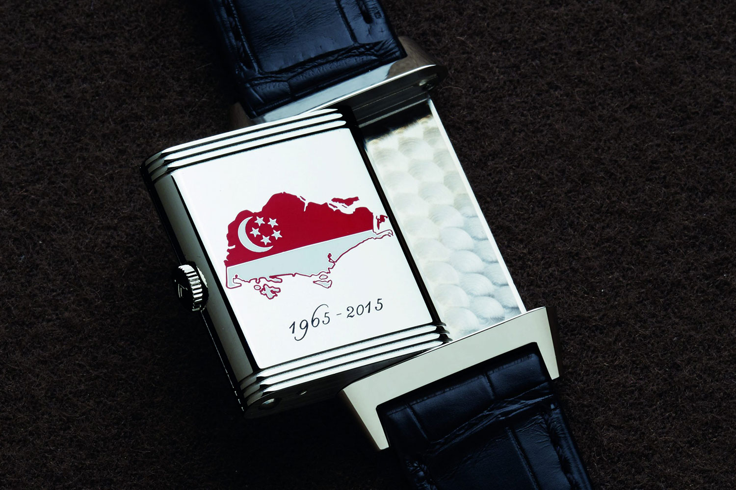 For Singapore’s golden year, Jaeger-LeCoultre introduced the Grande Reverso Night & Day Singapore Special Edition. The watch features a silver-toned guilloché Clous de Paris pattern in the center of the dial, while a distinctive night-day indicator sits at the 6 o’clock position. When the iconic Reverso case is flipped, it reveals an intricate engraving of the Singapore map, filled with the red and white lacquer of the national flag, along with the dates 1965-2015, commemorating the nation’s independence. Fun fact: This marked the second market-specific Reverso release, following the Grande Reverso Ultra Thin 1931 for London.