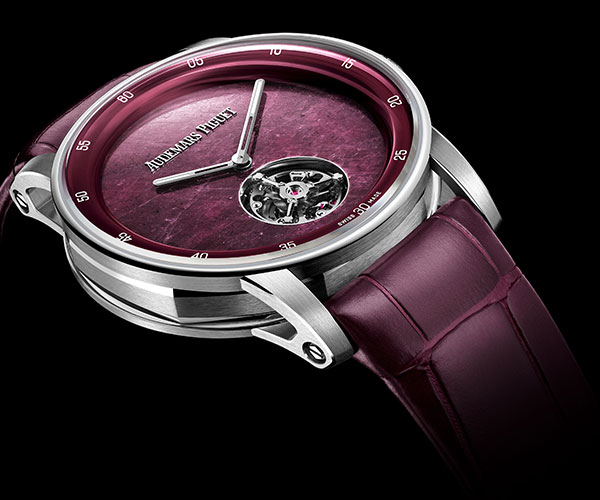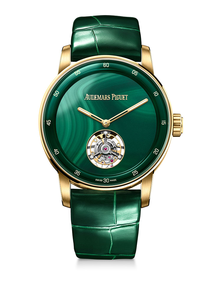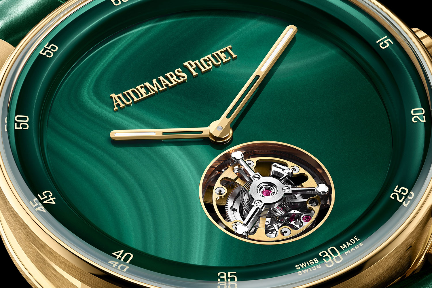 Stone dials have been part of Audemars Piguet’s design repertoire since the 1960s, but their creation requires painstaking craftsmanship. Each wafer-thin slice must be cut, polished, and secured without cracking, while retaining the unique veining and tonal variations that make every dial one of a kind. Ruby root, sourced from Tanzania, is associated with vitality; sodalite from Brazil represents calm and clarity; while Zambian malachite symbolizes growth and transformation.