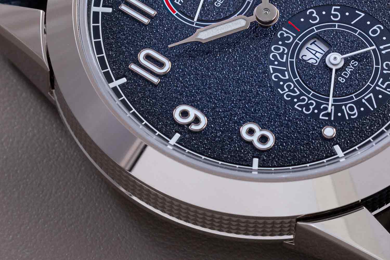 Strictly speaking, the twin barrels store enough energy for nine days of power reserve, which is why a careful eye will notice nine slots on the power reserve indicator. However, Patek Philippe states that the watch is only guaranteed to run accurately for eight days. The ninth day is intended purely as a safety margin, which is why it is not officially mentioned in the specs.