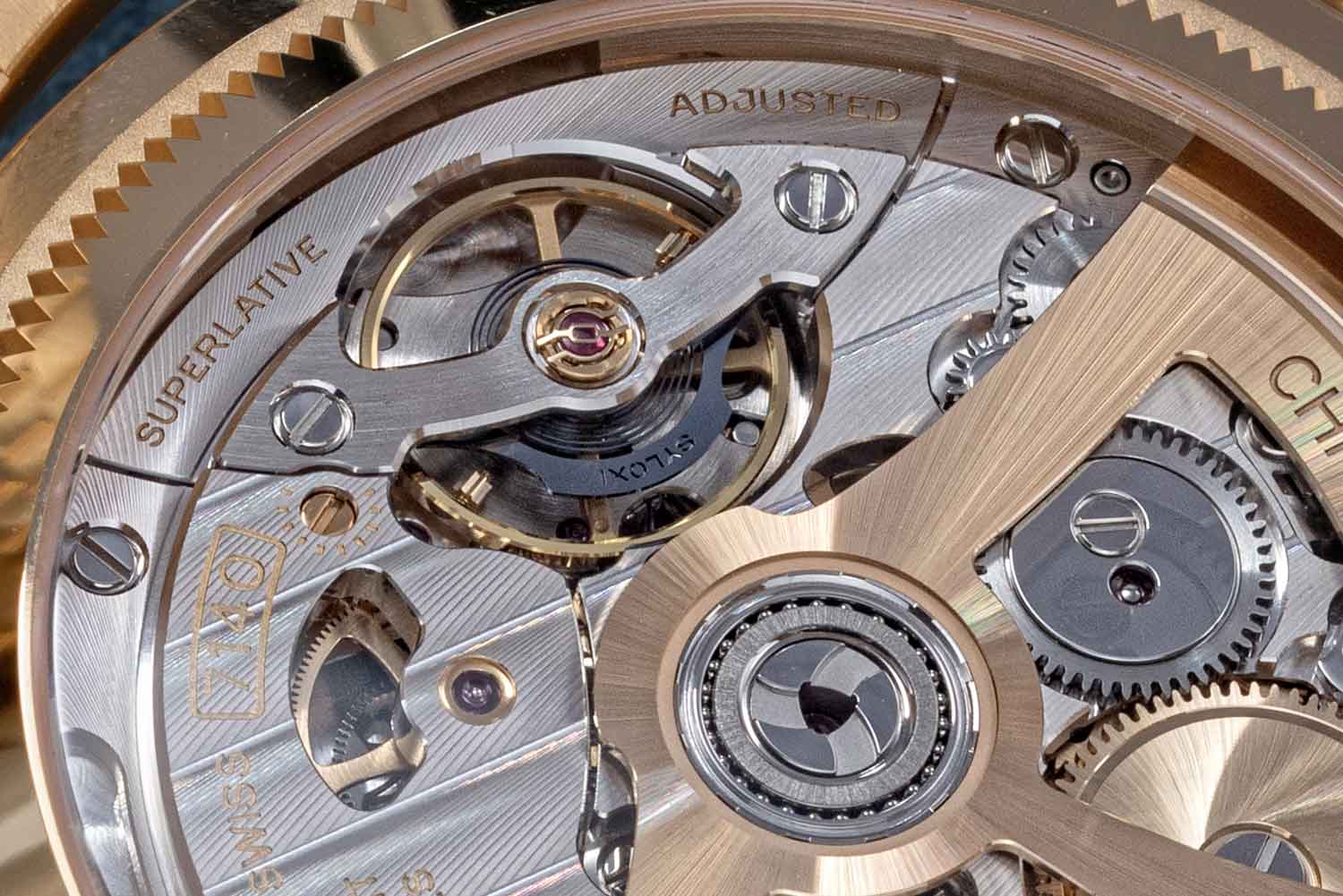 Among all the new features of the 1908, the open case back is the most immediately surprising, displaying the beautiful cal. 7140. (Image: Revolution ©)