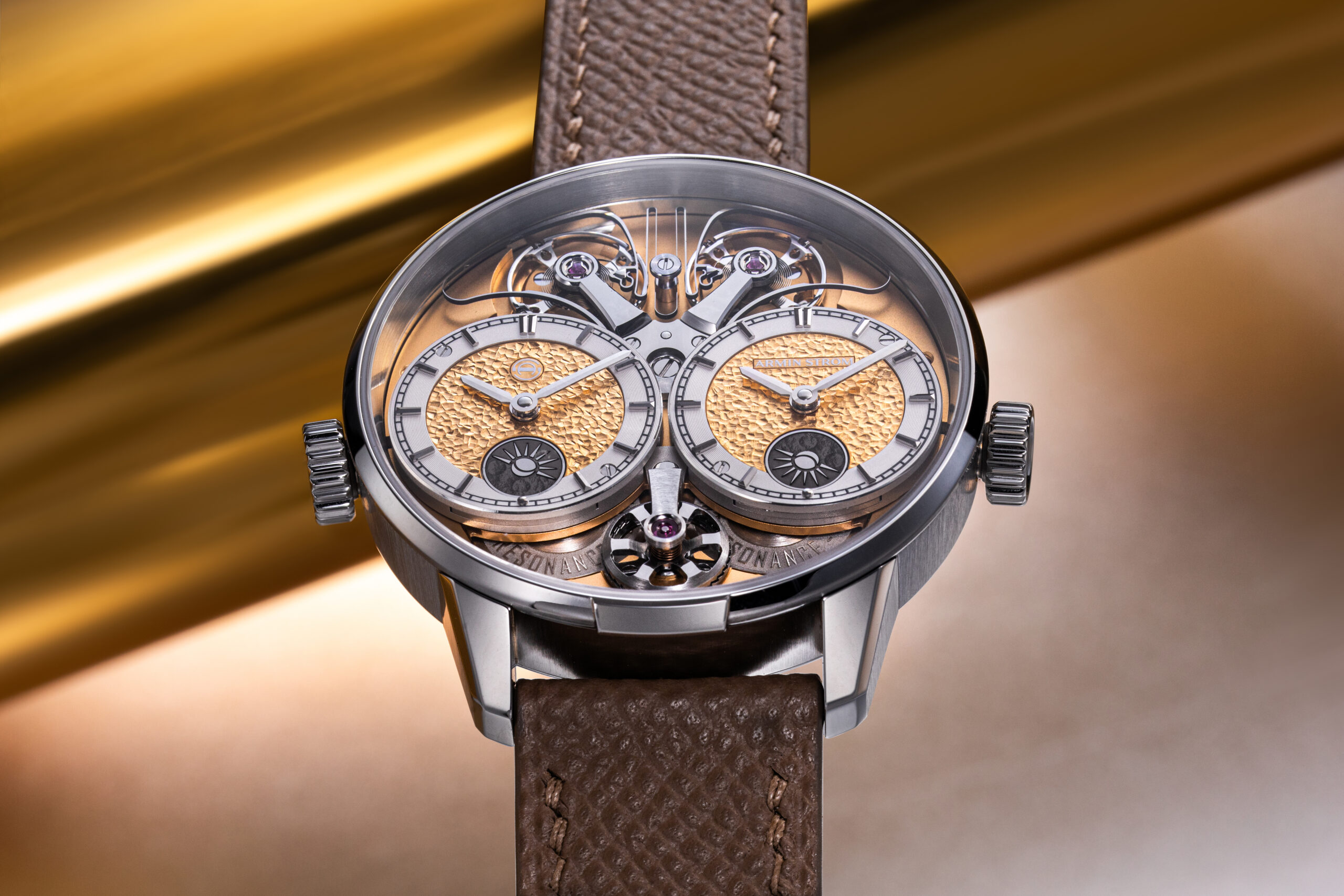 It gives us immense pleasure to introduce the Armin Strom × Revolution Dual Time GMT Resonance “Tremblage,” created in a very small series of five unique pieces.
