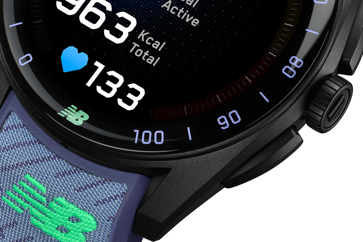 This upgrade makes its debut in the new TAG Heuer Connected Calibre E5 40MM × New Balance Edition. Encased in a 40mm DLC grade-2 titanium case, the watch adds advanced fitness tools: dual-band GPS (better accuracy even in tough environments), heart rate monitoring, extended battery life, and recovery metrics.