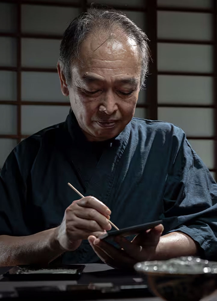 KI: We’ve examined the saya (traditional scabbard for the Japanese katana) to a great degree in order to better replicate it down to the scale of the bracelet — and it’s not something that can be done in one go. We also had to make sure of the “perfect” size so that it can really show off what we were trying to interpret. There was a lot of going back and forth — involving the craftsman to show us how it should be, amidst the barrage of extremely inquisitive designers. So many of us were involved in this; it’s constant trial and error. The blue shell lacquer design by artist Nomura Mamoru was achieved using a processing technology developed especially for this timepiece (comprising a patent-pending structural color technique.)