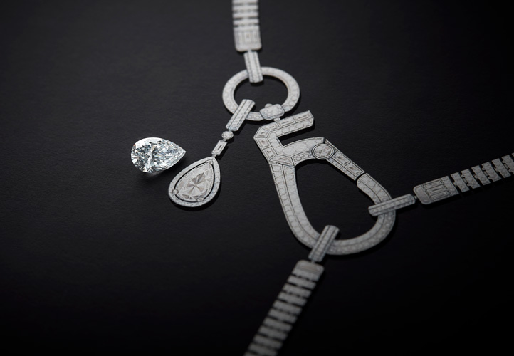 From the camelia to the number five, the lion to the comet, the ruban and the plume, high jewelry collections from Chanel embrace all that is precious and dear to its storied origins. In particular, the maison has been known to source for very, very specific gemstones such as the phenomenal 55.55-carat D-IF Type IIa diamond which is the star of Chanel’s show-stopping 55.55 necklace crafted as a tribute to the No. 5 perfume bottle, itself an homage to Place Vendôme, the heart of Parisian luxury.