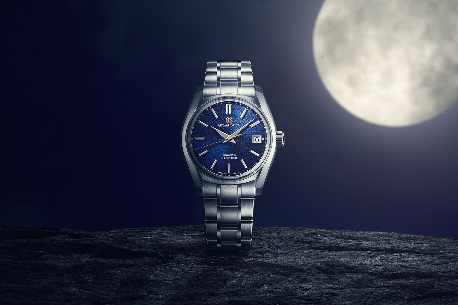 This dial takes inspiration from the traditional Japanese calendar’s 24 seasons, called Sekki — specifically the sixteenth, Shūbun. This time occurs around the autumnal equinox and is defined by clear, calm skies, illuminated by the moon and stars. Here, the deep blue stands in for the night sky, while the gold tone lettering of the “GS” numerals and the seconds hand remind the wearer of glittering stars and shimmering moonlight.