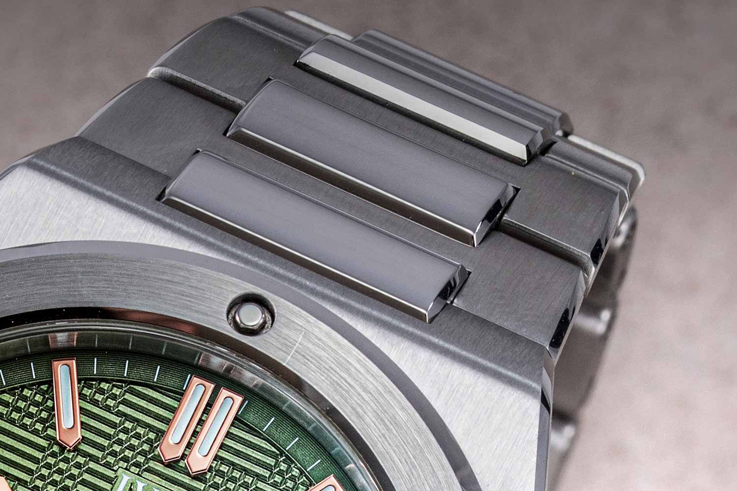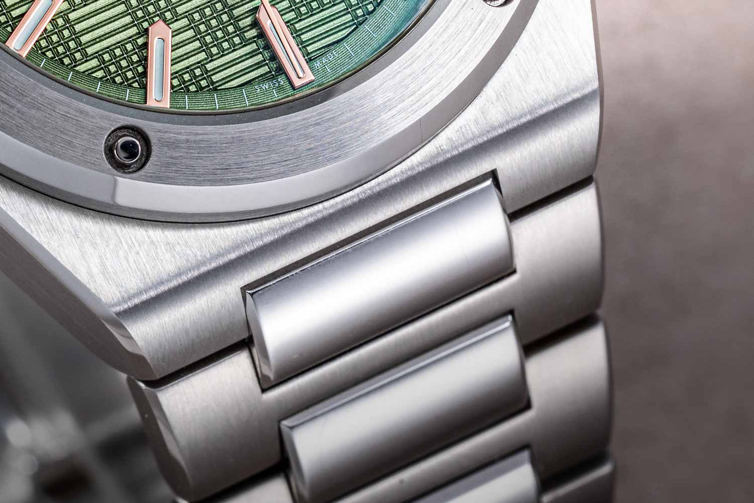 The same sense of solidity applies to the bracelet, which I would argue is finished even better than the case. It has a reassuring weight and a strong sense of precision. The links are thick and well constructed. Even the centre links are not flat; they have a subtle dome that adds to the overall heft. Each side of the centre link also features a bevel, giving the edges a sharp, defined look and keeping the domed profile from appearing too soft. The polished bevels continue along the outer edges of the bracelet, tying the whole design together with a cohesive finish.