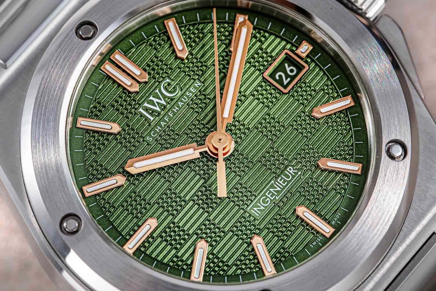 Second, the dial gets gold-toned applied markers and hands, and that makes all the difference. I’ve always found the finishing on the standard Ingenieur a little lukewarm. Technically flawless, yes, but they just don’t catch the eye. This change in colour completely transforms their presence. Gold and green are a natural pair, but what matters here is how well it’s been done. The tones are balanced carefully so the watch never feels overly warm or too rich. Instead, it stays fresh and youthful, with just enough luxury to remind you this is a serious sports watch, done right.