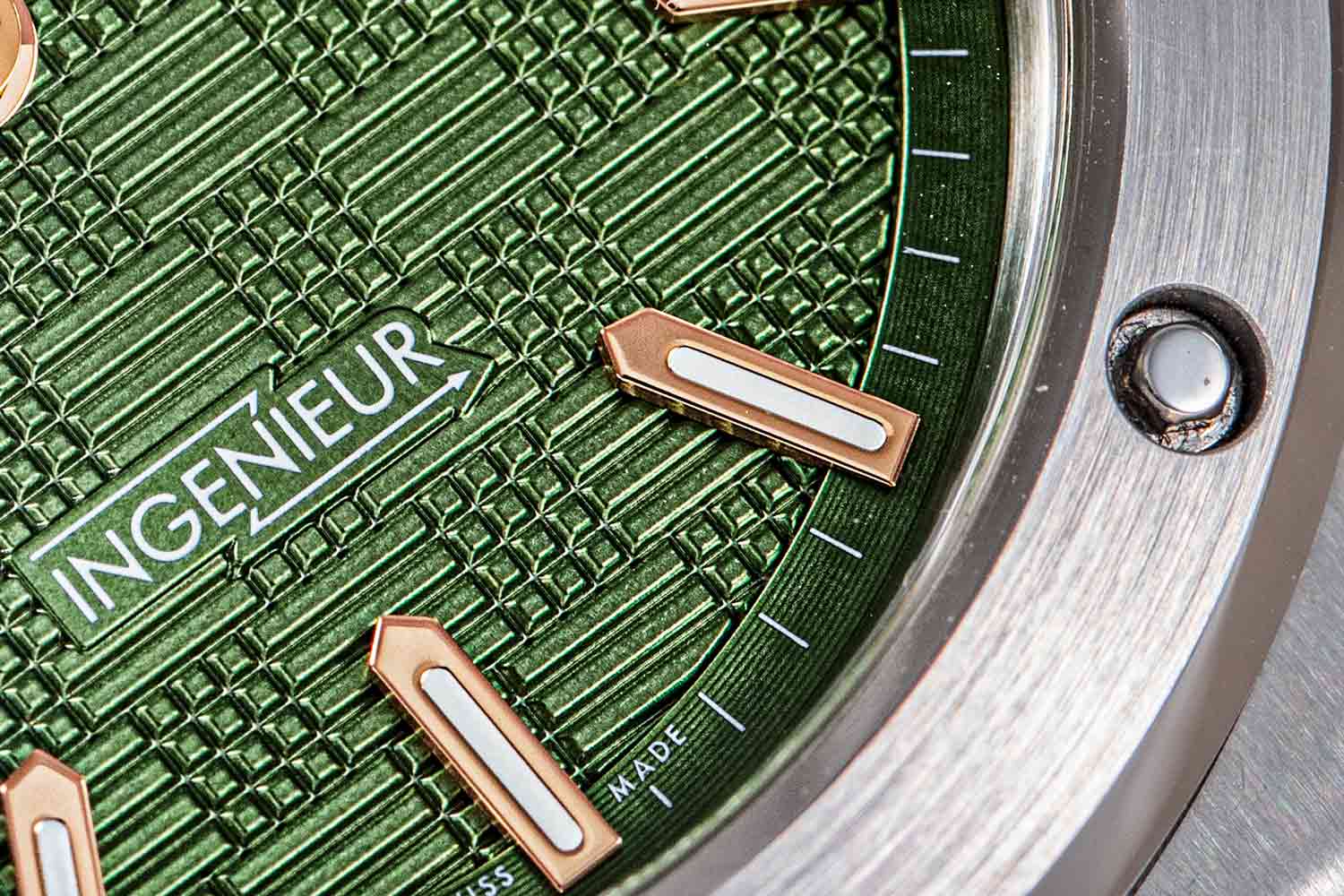 The appeal of the Ingenieur is immediate when handled in the metal. The case design is old-school, complete with notches on the bezel. The dial stays faithful to the 1976 original, though the signature basketweave pattern has been enlarged. And while the standard colours — black, blue, and white — are as classic as those on a Royal Oak or Nautilus, they somehow do not quite bring out the best in the design. Until now.