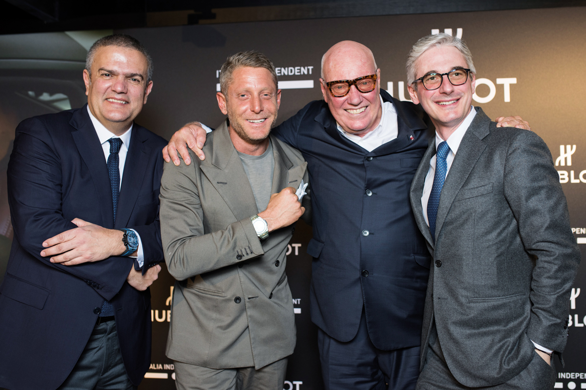 (from left) Ricardo Guadalupe, Lapo Elkann, Jean-Claude Biver and Andrea Tessitore, who co-founded Italia Independent together with Elkann, at Baselworld 2016