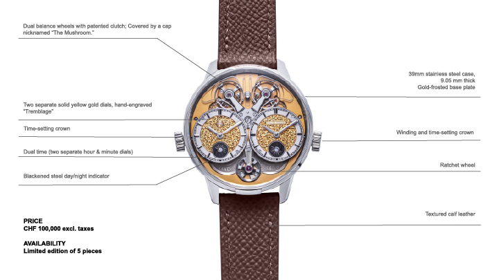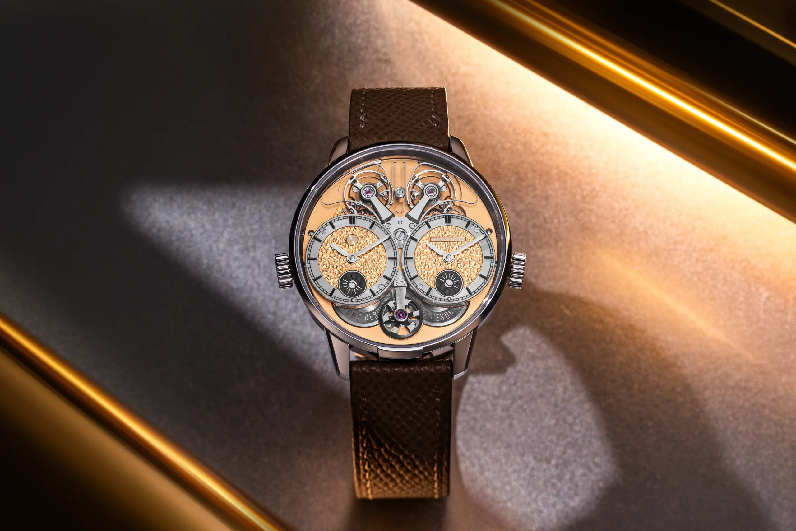 It gives us immense pleasure to introduce the Armin Strom × Revolution Dual Time GMT Resonance “Tremblage,” created in a very small series of five unique pieces.