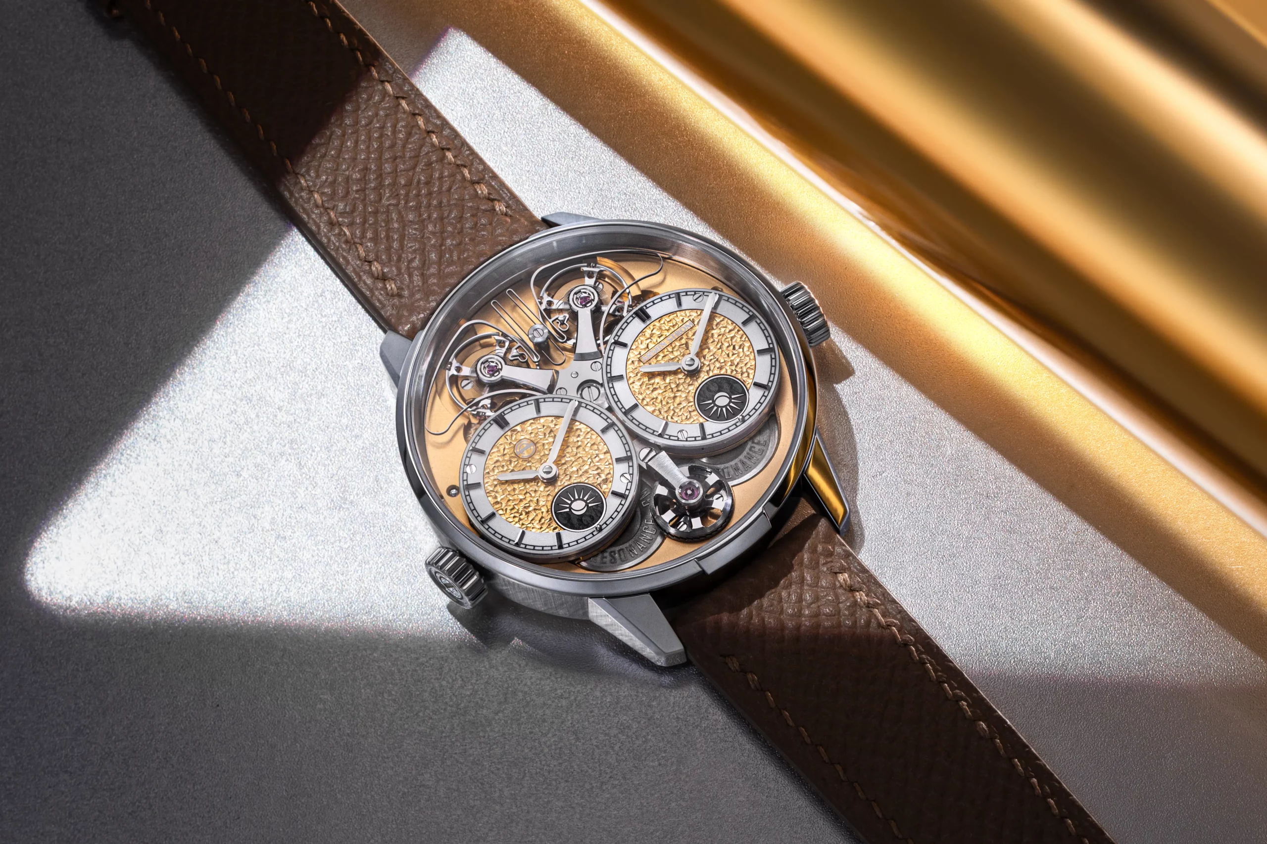 - The Tremblage edition, illuminated to reveal its gold dials and mechanical harmony
