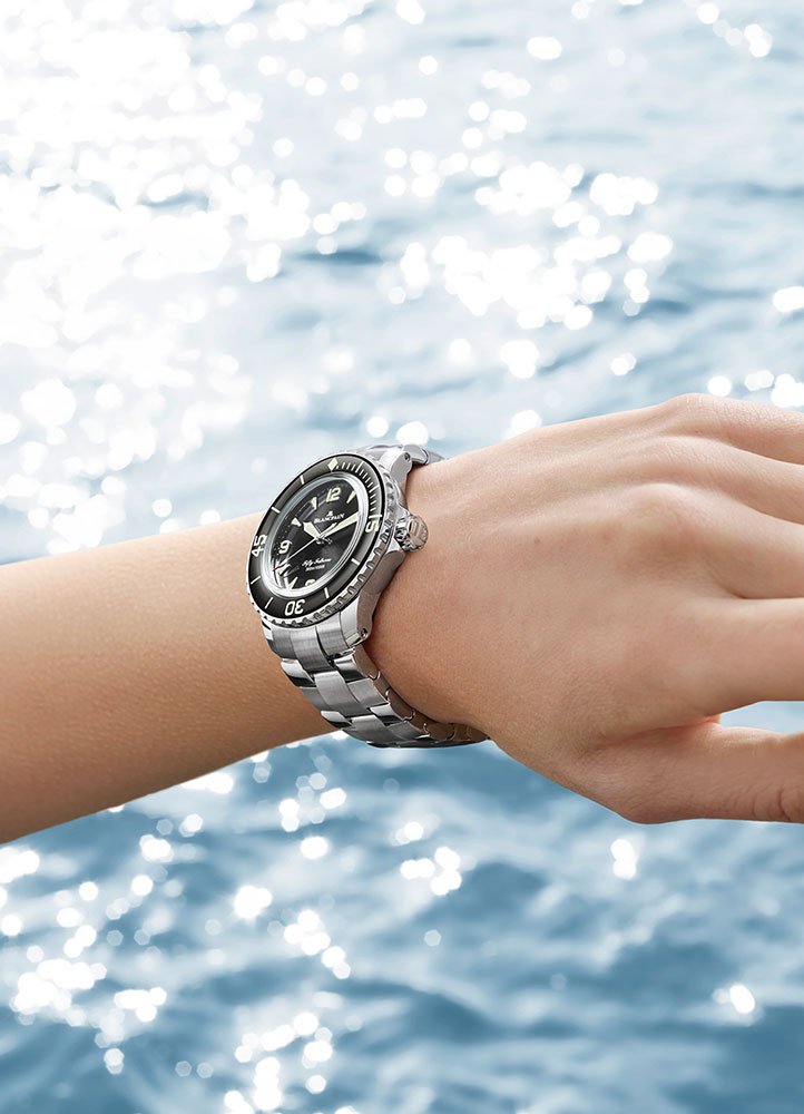 But this isn’t just about resizing. Blancpain has gone back to the drawing board to ensure the new 38mm case isn’t merely a miniaturized version of its iconic diver, but bears a re-proportioned design that feels harmonious on wrists of all sizes.