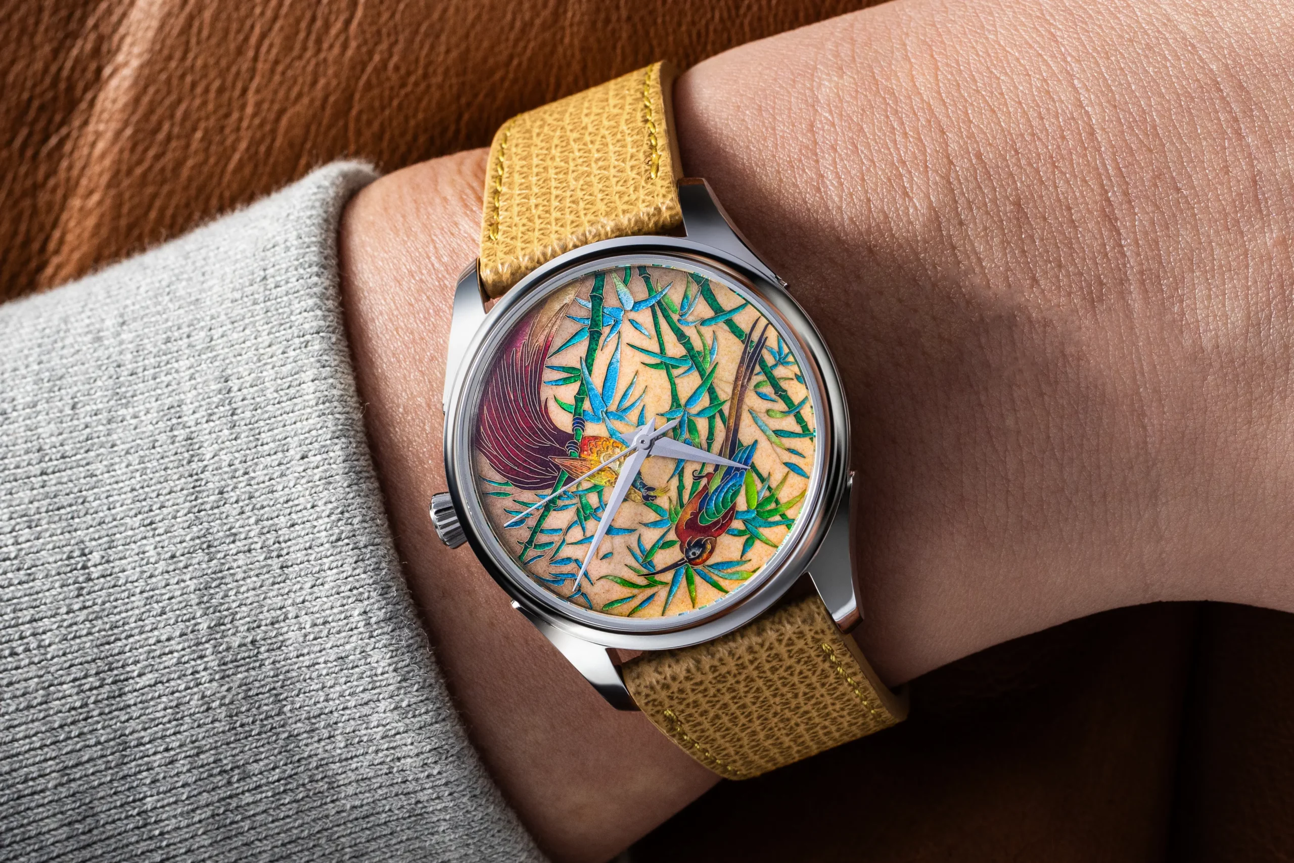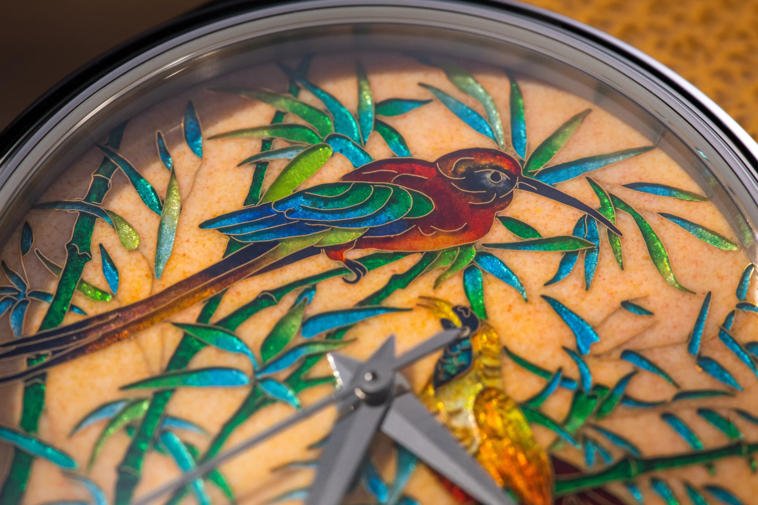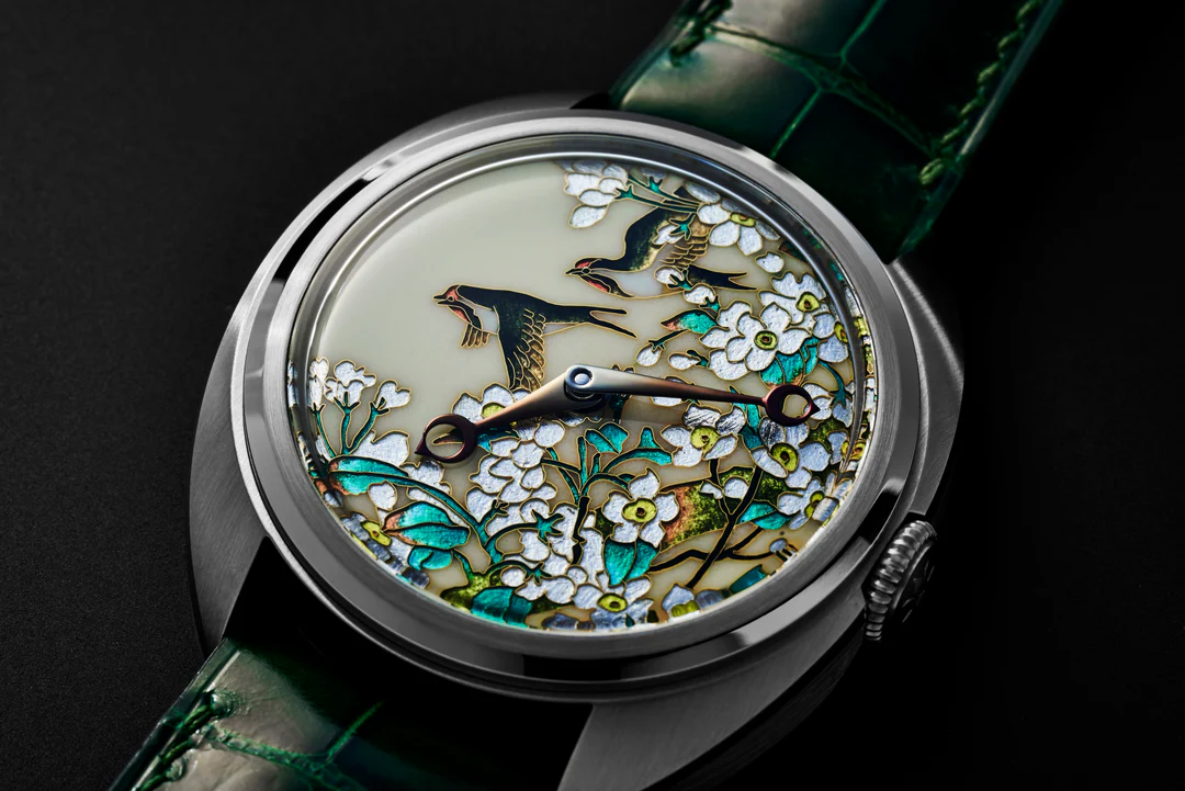 The term cloisonné — derived from the French word cloison, meaning “partition” — refers to the wires used to outline the decorative motifs before filling them with enamel. The process is laborious and demands exceptional craftsmanship, with very few artisans capable of executing it at a high level. As a result, production was extremely limited. Across all watch brands, only a few hundred cloisonné enamel wristwatches were ever made, making them prized rarities in the world of fine watchmaking.