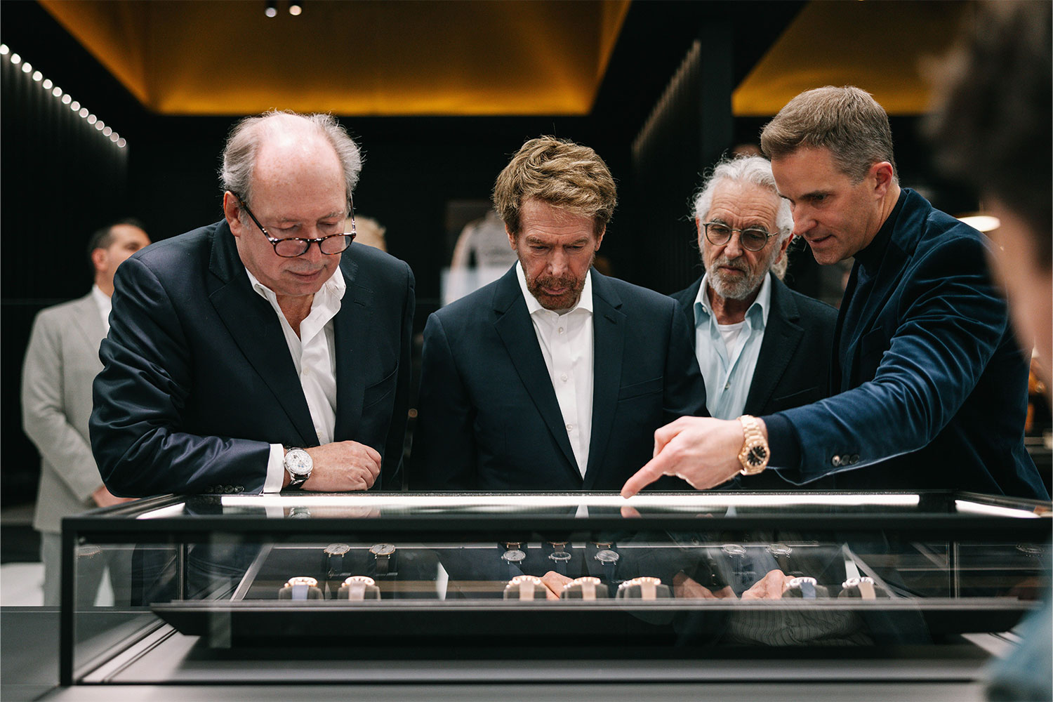 From left: Hans Zimmer, Jerry Bruckheimer, Steve Kofsky and IWC Schaffhausen CEO Chris Grainger-Herr at the IWC Schaffhausen booth at Watches and Wonders Geneva on April 03, 2025 in Geneva, Switzerland. (Photo by Remy Steiner/Getty Images for IWC)