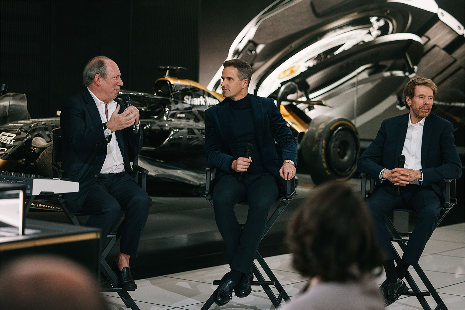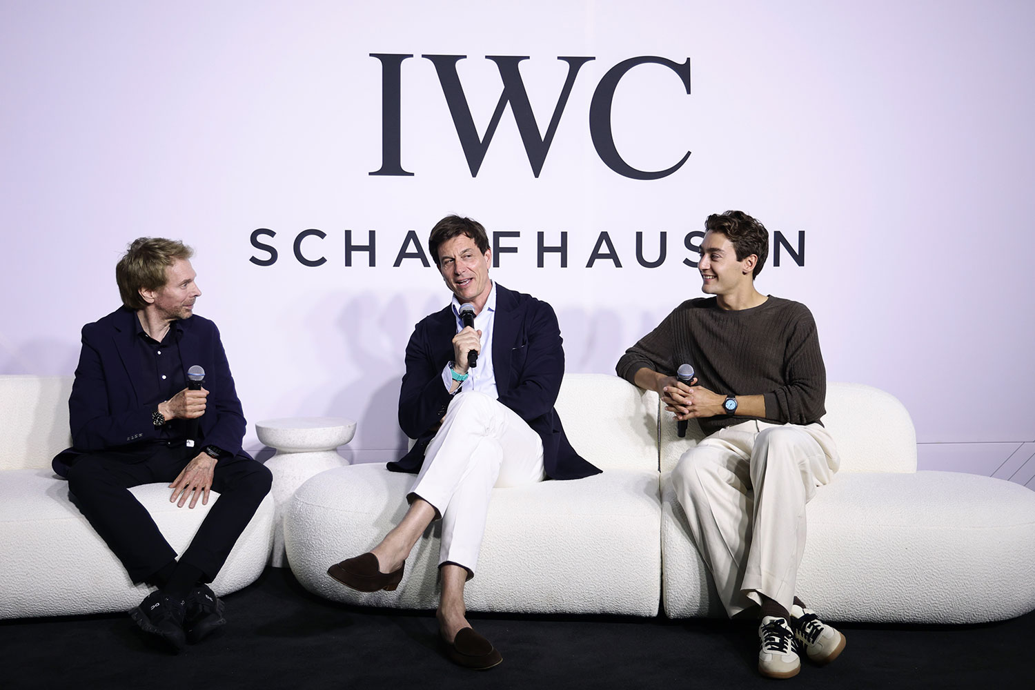 From left: Hans Zimmer, Jerry Bruckheimer, and IWC Schaffhausen CEO Chris Grainger-Herr present the collaboration between IWC and the Movie F1 at Watches and Wonders Geneva on April 03, 2025 in Geneva, Switzerland. (Photo by Remy Steiner/Getty Images for IWC)